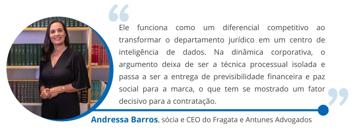 Um dos grandes diferenciais do ODR é a capacidade de mensurar o que antes era subjetivo. Andressa destaca que, no Fragata e Antunes, a implementação resultou em redução real no custo médio por demanda e no ciclo de vida do processo. Utilizando indicadores como Cost-to-Settle (custo de encerramento) e ticket médio versus risco de condenação, o escritório conseguiu otimizar a margem operacional, focando na entrega de valor e não apenas no processamento de volume.